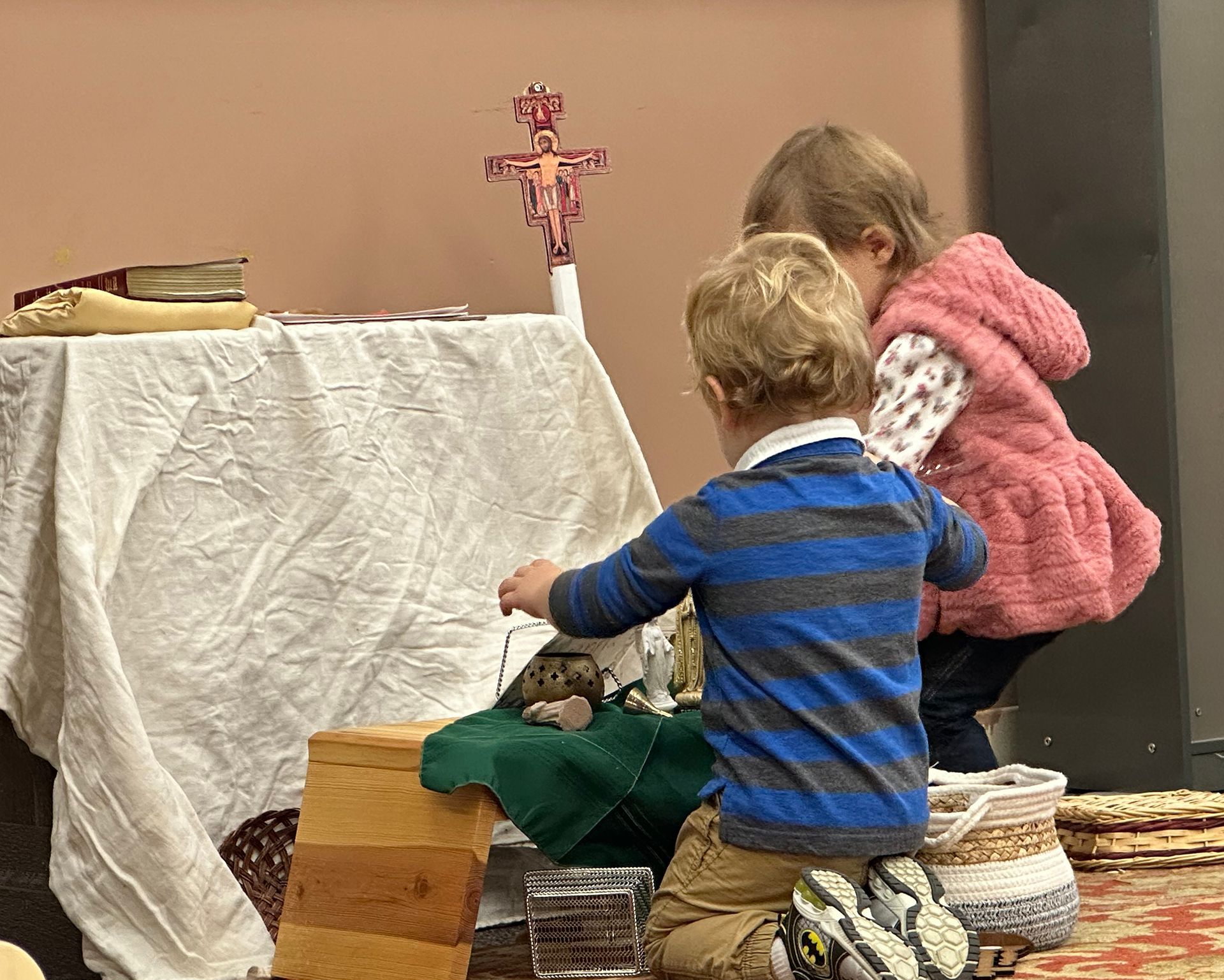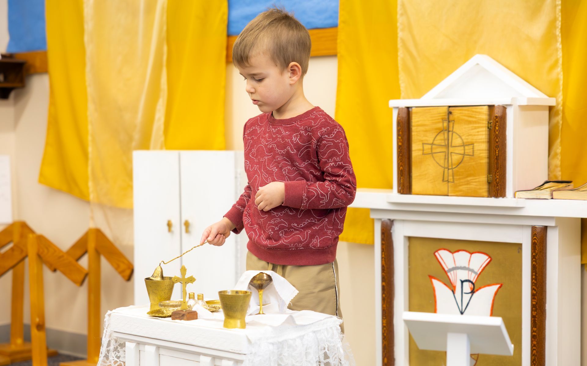 Here, children work with hands-on materials drawn from the Bible and the liturgy. Led by the Holy Spirit, they return to these themes at their own pace, entering into deeper prayer and understanding. The Atrium nurtures the whole child—mind, heart, and spirit—preparing them for worship in the greater Church and for a lifelong friendship with Christ.